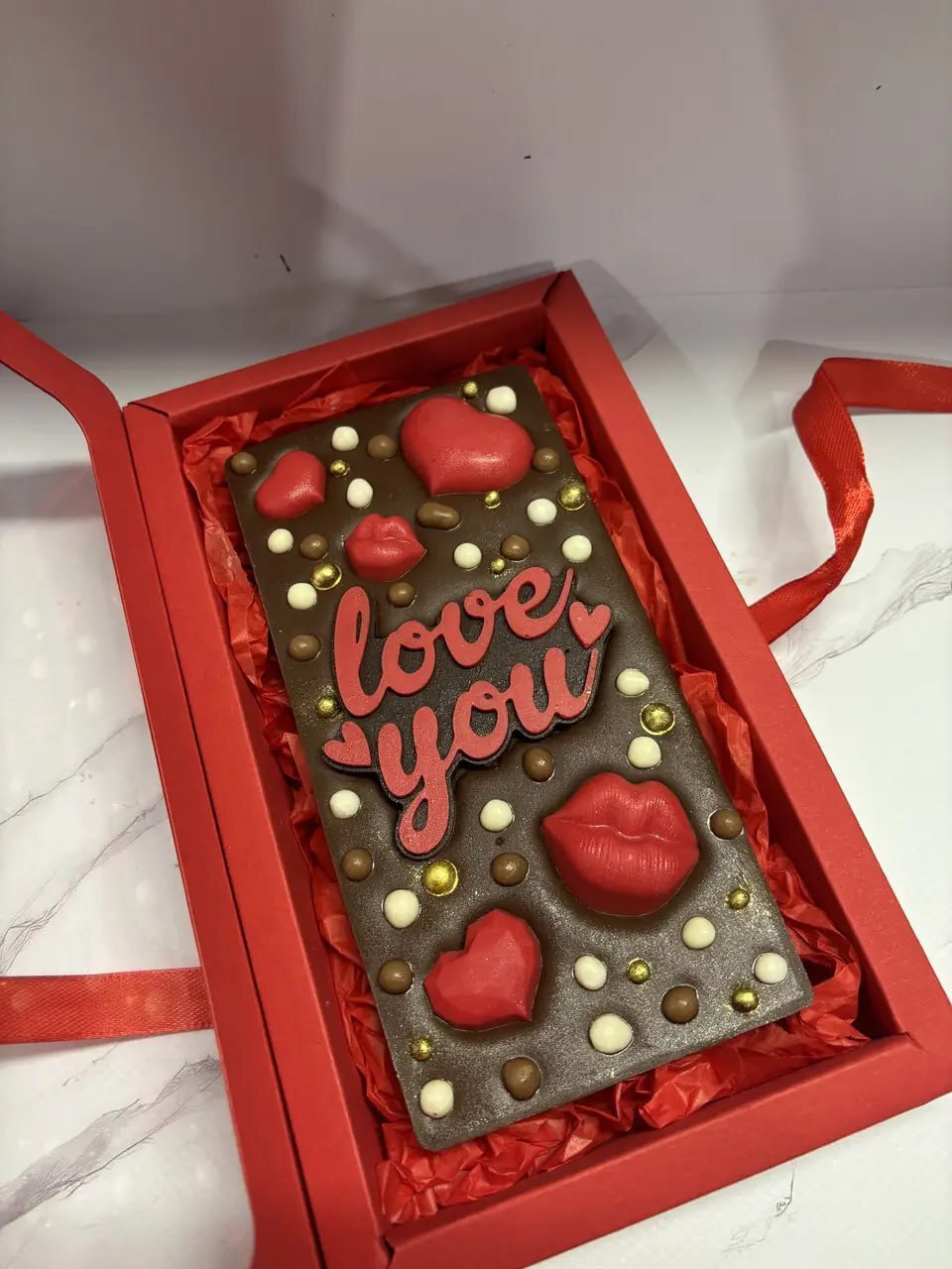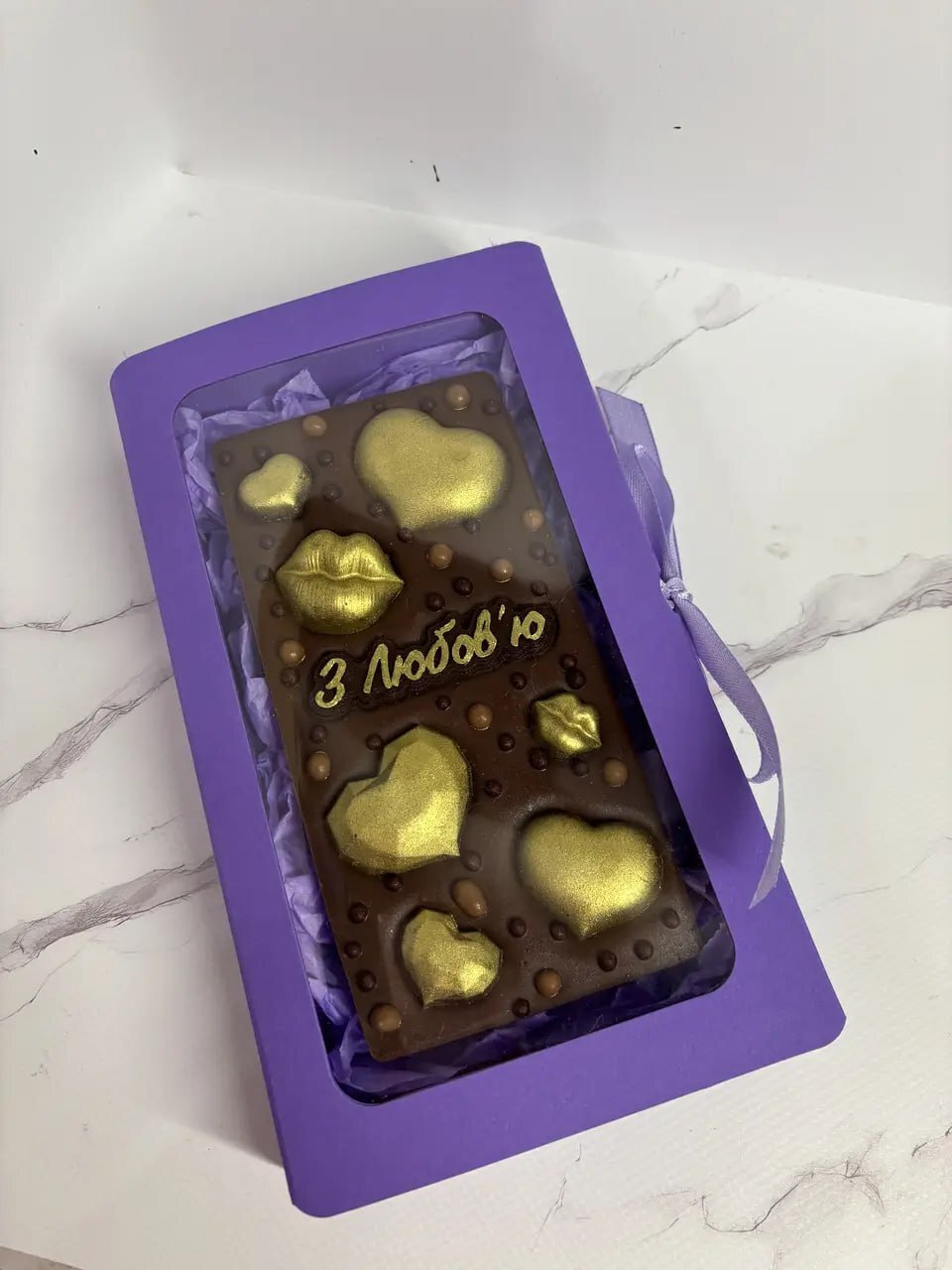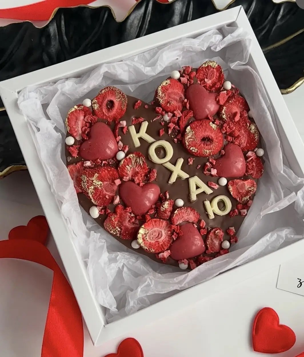 ✨ Витончена шоколадна плитка ручної роботи з натурального шоколаду, оздоблена об’ємними сердечками, поцілунками та стильними деталями. Кожен дизайн доповнений теплим посланням, що робить цей подарунок щирим і особливим 🎁