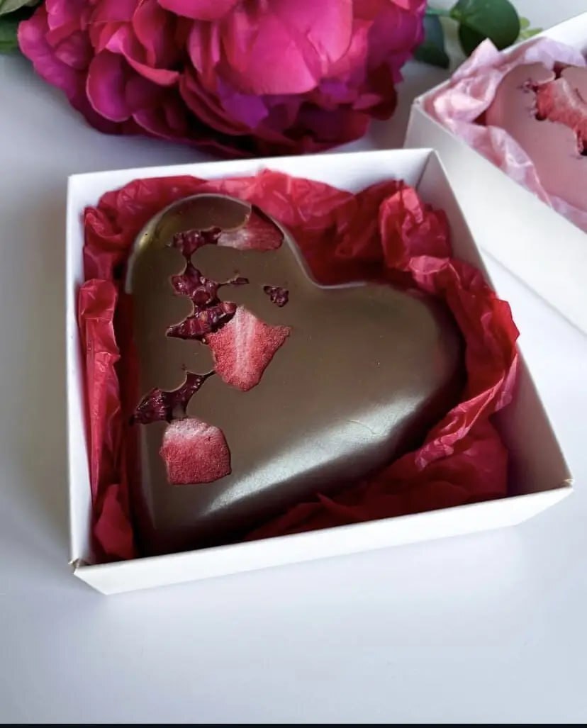 Вишукана шоколадна цукерка у формі серця, яка декорована натуральними інгредієнтами та запакована в елегантну індивідуальну коробочку!❤️